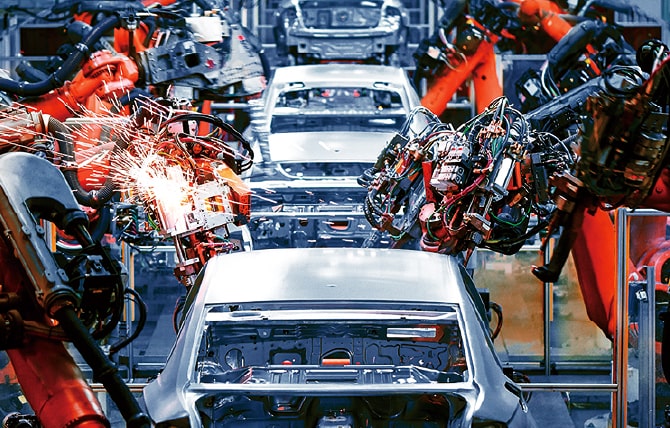 Welding, polishing, handling, inspection, painting, burr removal, transportation, special work, taking out of molded items, assembly, soldering, power assisting, packing, cleaning, picking, systems for improvement of production efficiency and labor-saving, etc.