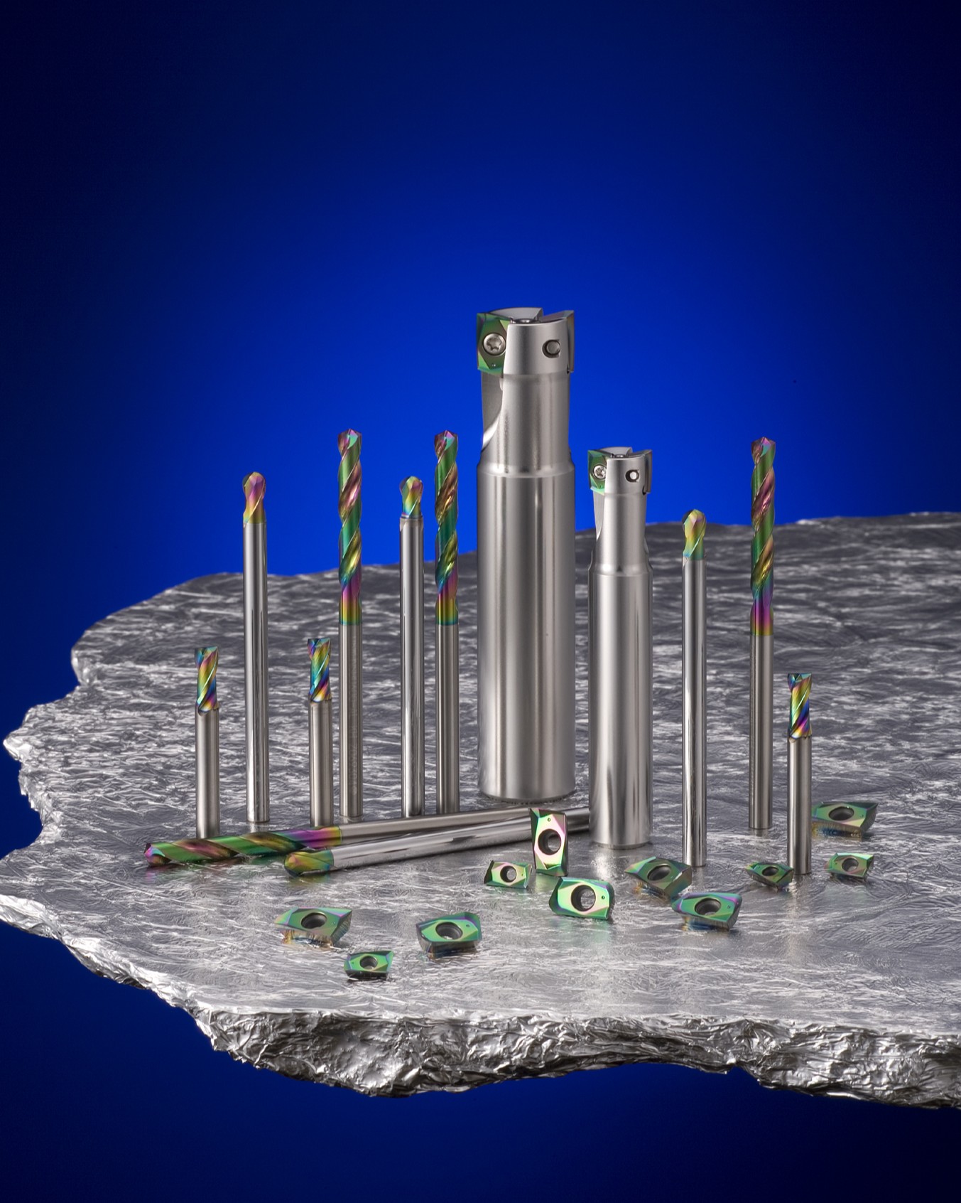 超硬エンドミル、刃先交換式工具、超硬ドリルをラインナップ。