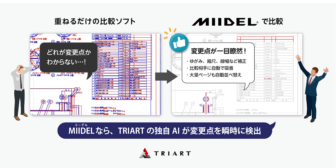 複雑なロボット設計において、部品図や配線図のわずかな修正ミスは、試作コストの増大や納期遅延に直結します。本ブースでは、図面比較の決定版『MIIDEL(ミーデル)』による、設計・製造現場のDXをご体験いただけます。