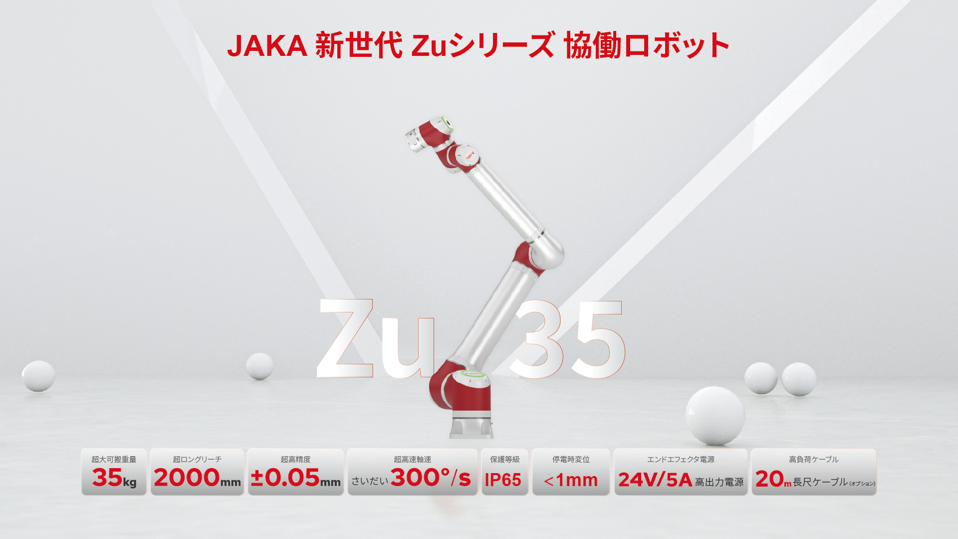 大負荷協働ロボットの新製品JAKA Zu35が登場。35kg可搬、±0.05mmの高精度とIP65防護を実現。