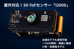 屋外対応の3D-ToFセンサーです。従来ToFセンサーの弱点とされてきた太陽光下での使用を可能にし、近距離(~7m)の検知・測距・認識に最適化されています。。