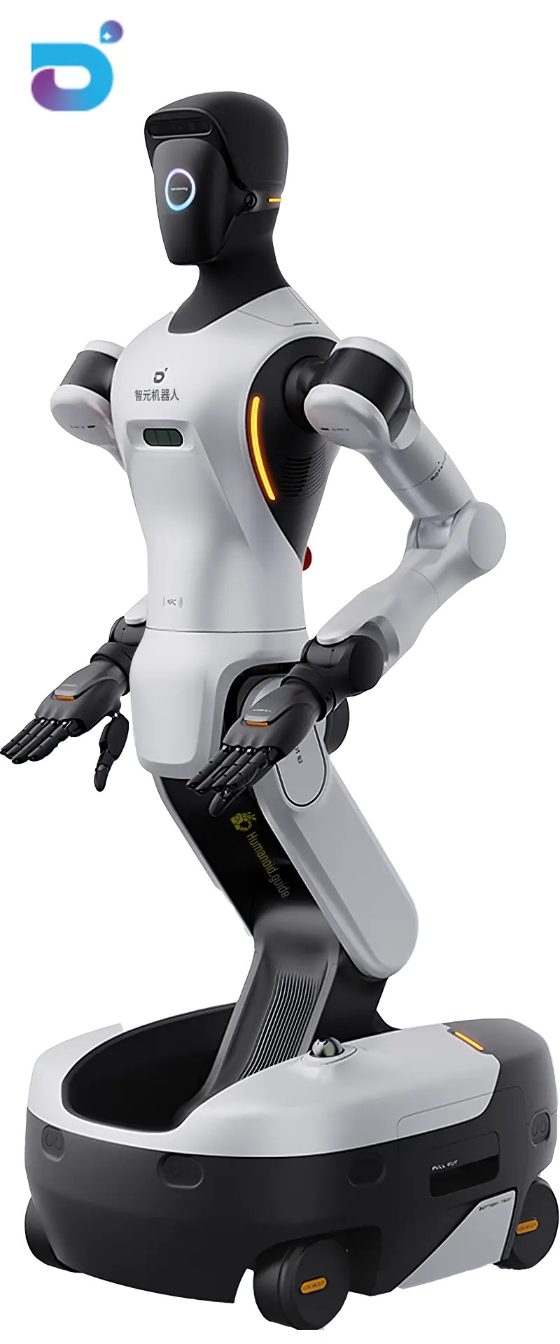 工場・物流向けに設計された産業用ヒューマノイドで、車輪移動と人型上半身を融合した高い機動性が特徴。力覚制御アームにより精密作業や協働作業が可能。