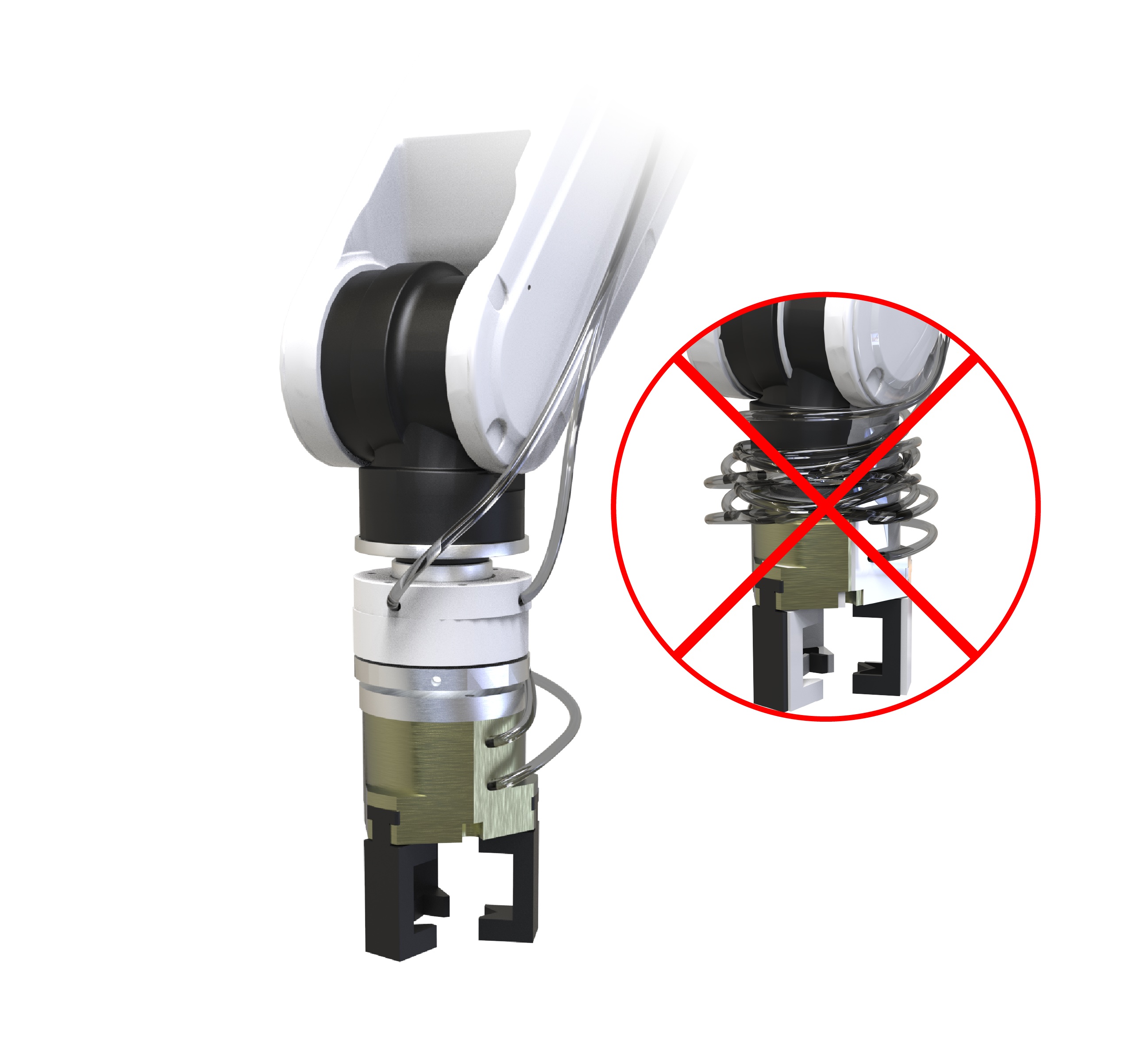 協働ロボットで配線・配管が人に当たらず安全