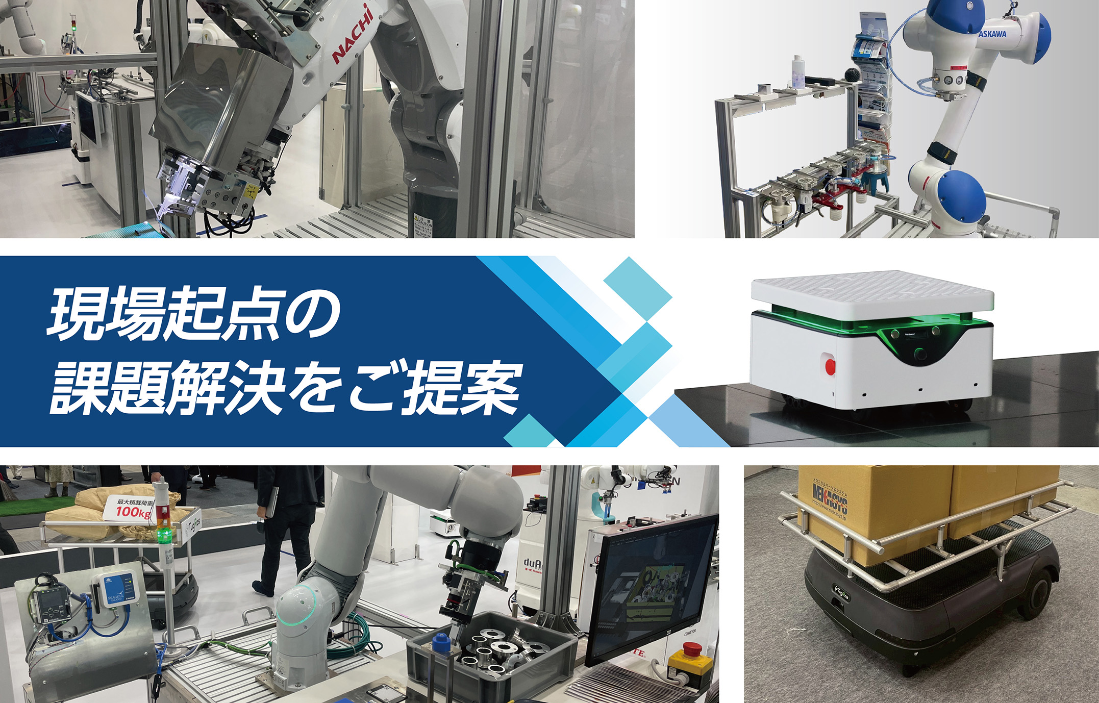 本ブースでは、搬送・組立・検査など人に頼りがちな現場課題に対し、実機デモを交えて各社ロボットと周辺機器でどう自動化できるのかを具体的にご紹介。メーカーの枠を超えた組み合わせができる商社だからこそ、“モノ”ではなく“解決策”をご提案します。