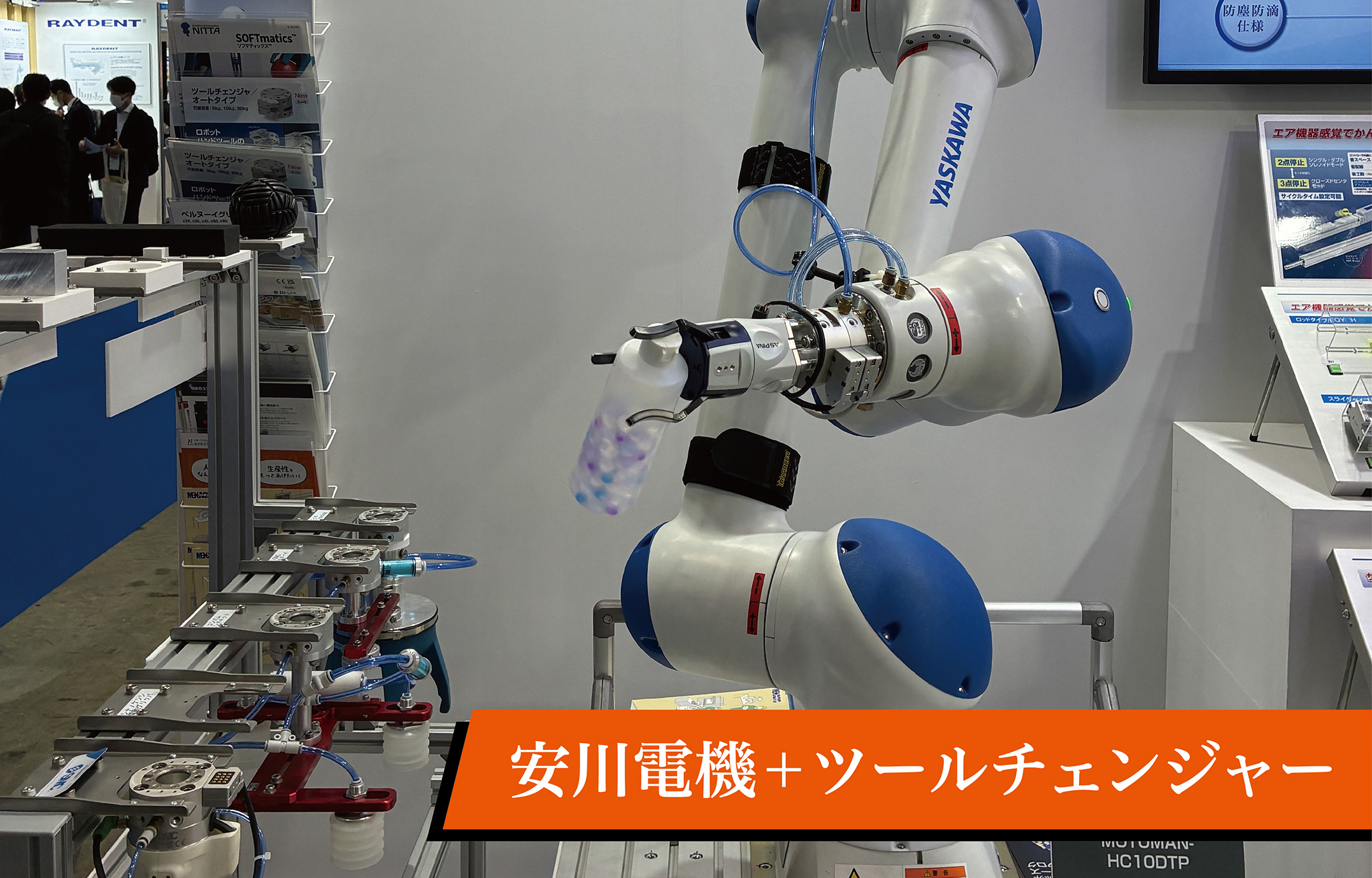 ツールチェンジャーにより多工程を1台で自動切替。ロボット稼働率向上を実現し、多品種少量生産のライン構築を支援。