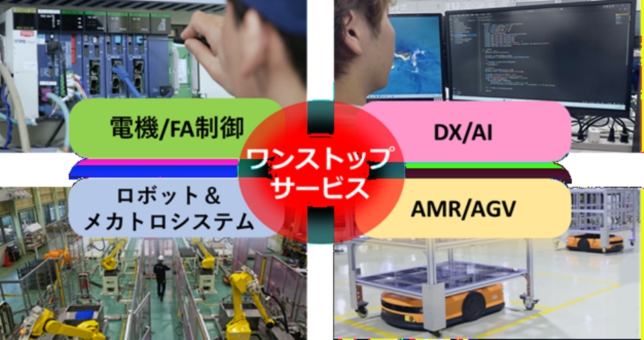 株式会社明和eテックは、AGV・AMRを活用した工場自動化ソリューションを、構想・設計から現場施工、立ち上げ、アフターサービスまでワンストップで提供しています。さらに、ハードウェアの導入のみにとどまらず、制御ソフトやアプリケーションの自社開発まで一貫して手掛けるSIerとして、現場に最適化された柔軟なシステム構築を実現し、生産性向上に貢献しています。