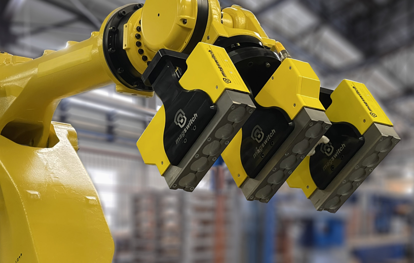 ●自動車・建機部品や鋼材など搬送に最適化した、ロボット用マグネットハンド