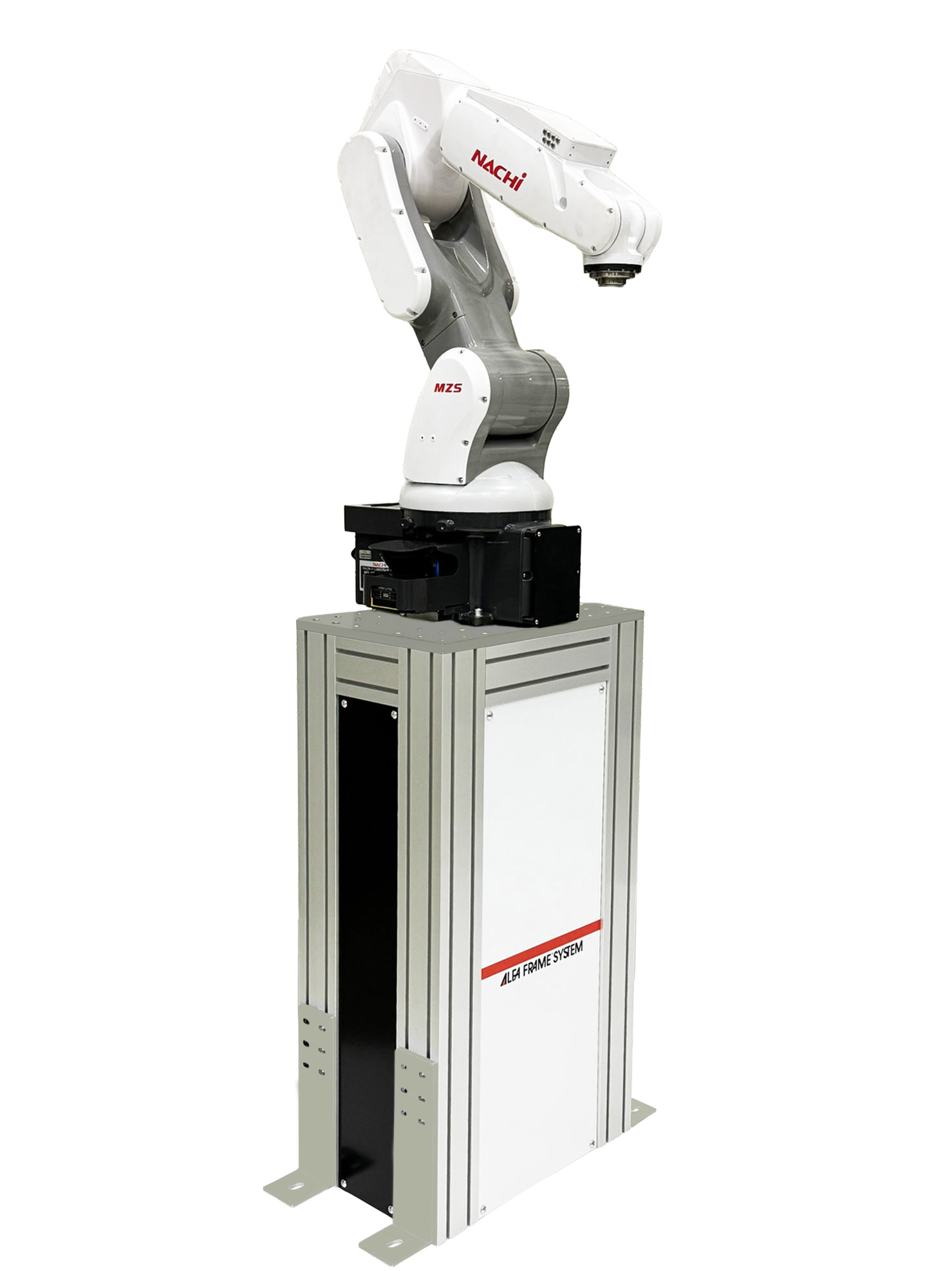 優れた安全性能と高速・高精度を実現した360度ぶつからないNACHI協働ロボットMZS05をしっかりと支える、コンパクトでローコストの専用架台です。