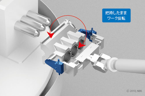 ワークを把持したまま反転できるため、サイクルタイムの短縮や反転台設置用スペースの削減が可能です。