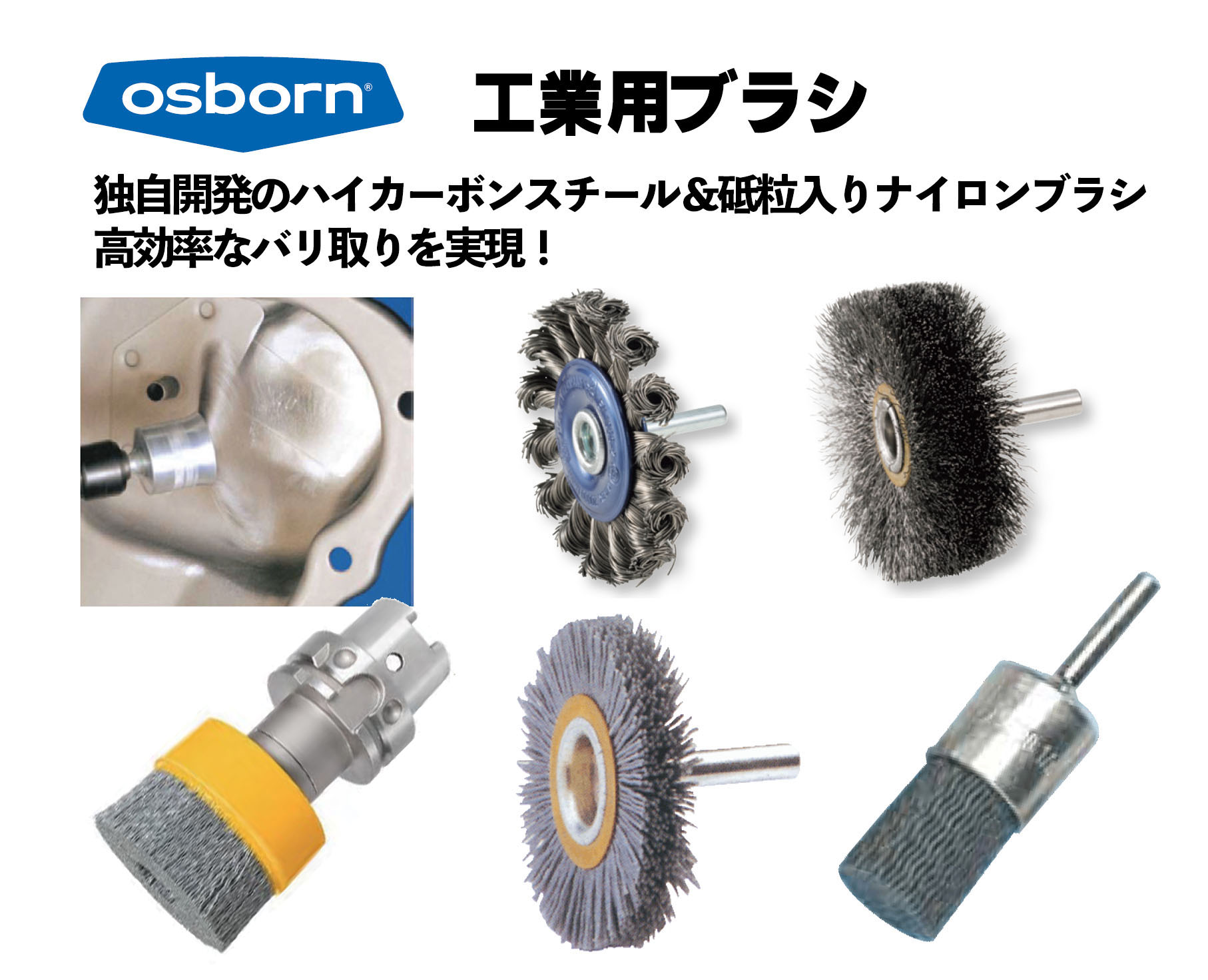 4シリーズ・全584アイテムの豊富なラインナップで、多様なワーク材質や形状に対応。手作業から自動機・ロボットまで、幅広いバリ取り加工に適応します。でばりんとの相性も抜群!