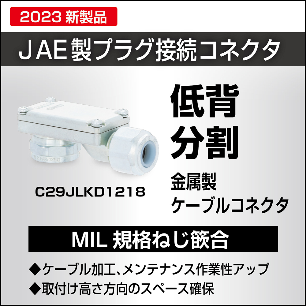 ◇JAE製「JL04V」プラグ接続、「JL10」レセプタクル接続対応(MIL規格ねじ篏合)。