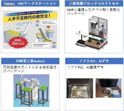 本展示では、食品向けパレタイジング(CR30H)、ねじ締結ワークステーション(CR30A)、自動車シートの外観検査(CR10A)、防水性能デモ(CRA-IP68シリーズ)、Nova2sおよびAtom小型ロボットを展示いたします。
