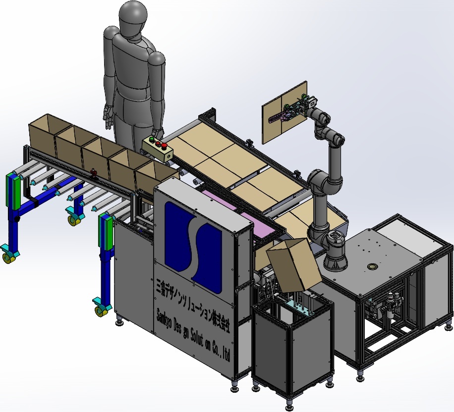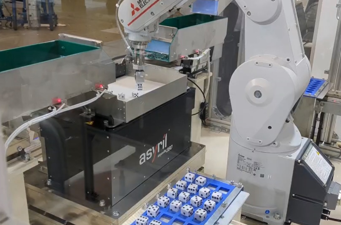静音フィーダ『無音君』上でロボットピッキングを行う装置。