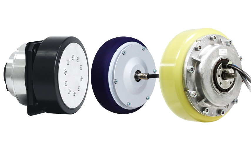 搬送の「自動化・省人化」に最適な駆動ユニットで、80W~400W、Φ150~Φ200までラインアップし、台車のアシスト化から重量物搬送のAMR/AGV駆動まで対応します。